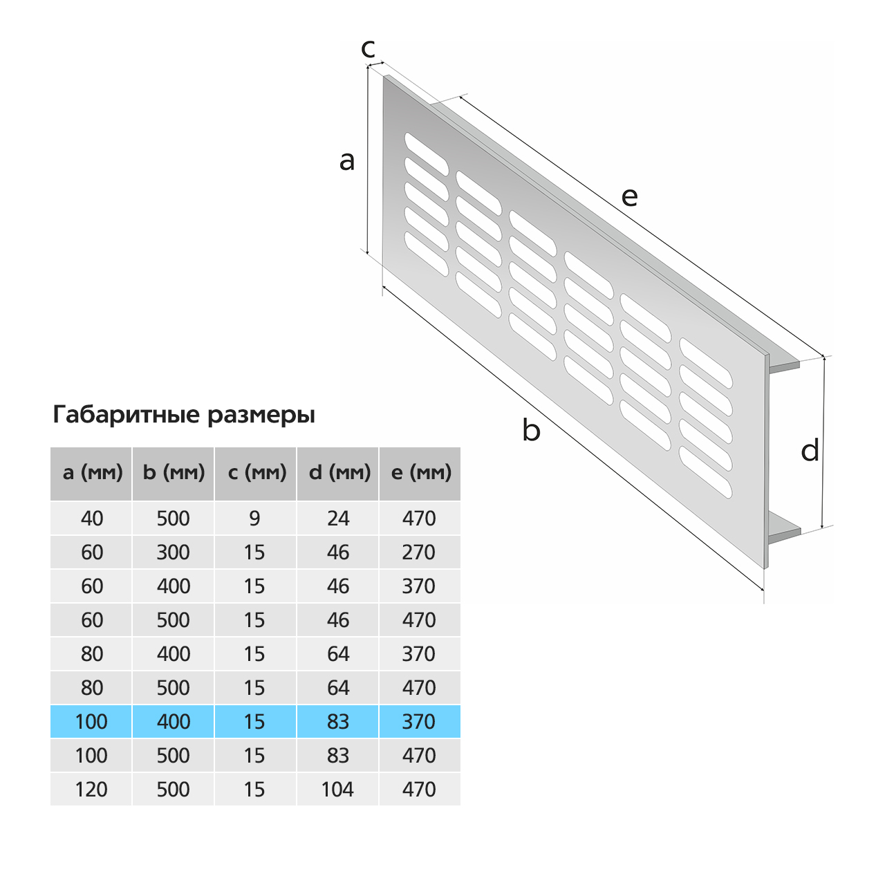 Прямоугольная вентиляционная решетка изготовлена из анодированного алюминия.