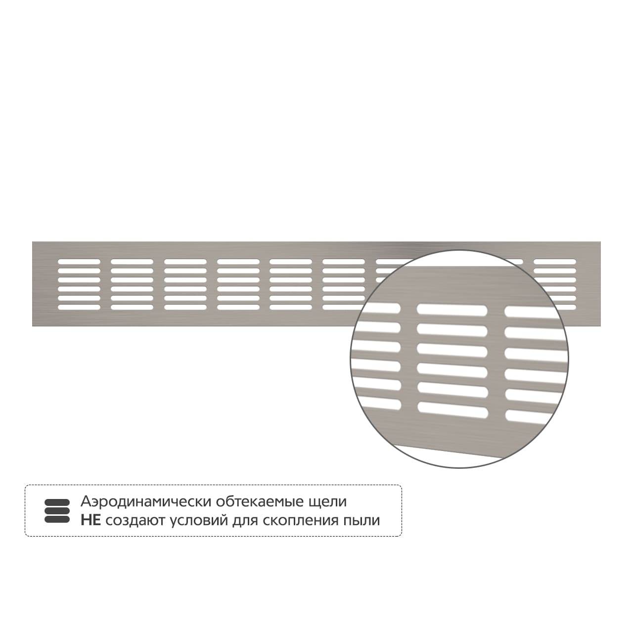• Аэродинамически обтекаемые щели не создают условий для скопления пыли