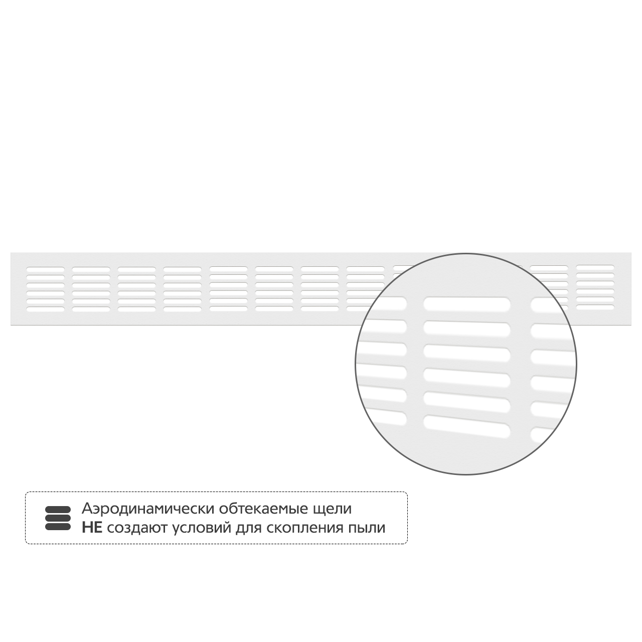 • Аэродинамически обтекаемые щели не создают условий для скопления пыли