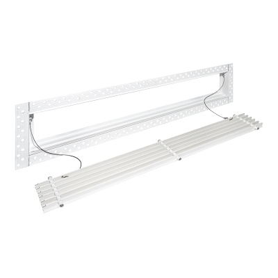 Данная решетка подходит для монтажа на любую поверхность под финишную отделку. Рама оснащена «полкой» 1,9 мм и рифлеными краями для большей адгезии финишного материала – шпатлевки, цемента. Решетка имеет съемную центральную часть с декоративным экраном. Она крепится к корпусу прочными металлическими тросиками, легко снимается для очистки и удобного обслуживания.