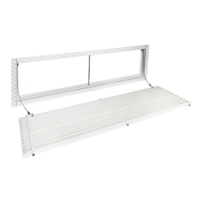 Данная решетка подходит для монтажа на любую поверхность под финишную отделку. Рама оснащена «полкой» 1,9 мм и рифлеными краями для большей адгезии финишного материала – шпатлевки, цемента. Решетка имеет съемную центральную часть с декоративным экраном. Она крепится к корпусу прочными металлическими тросиками, легко снимается для очистки и удобного обслуживания.