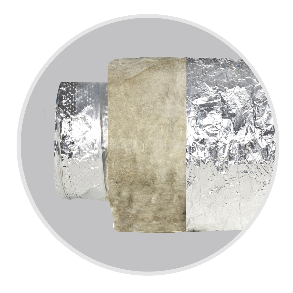 Тепло-звукоизоляционный слой толщиной 32 мм выполнен из материала высокого качества плотностью 12,5 кг/м³. Его коэффициент сопротивления теплопередаче - 0,8 м² К / Вт. Воздуховод с такими характеристиками позволяет эффективно снижать шум от работы вентиляции, делает пребывание людей в помещении комфортным.
