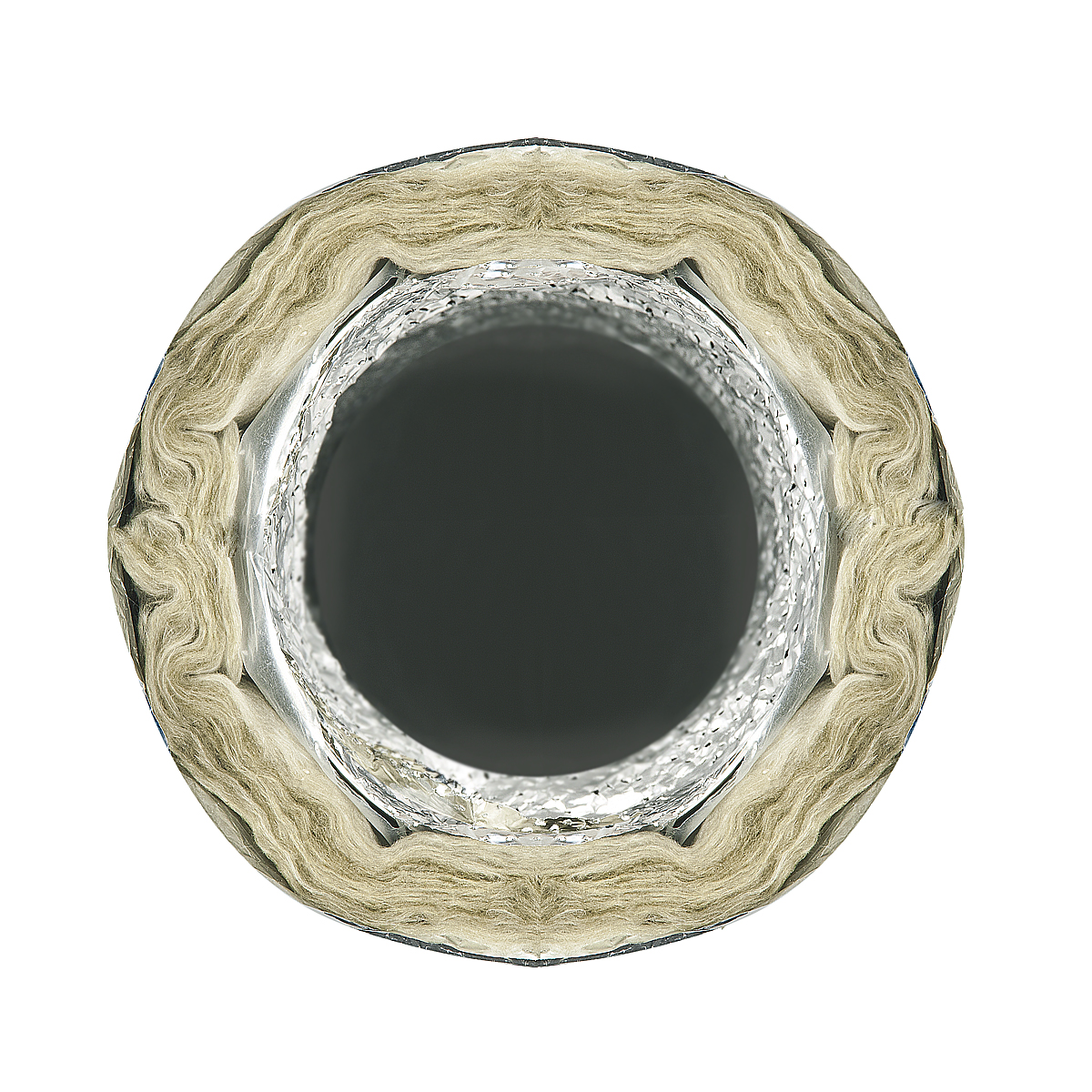 Наружный слой из алюминия, ламинированного полиэстером, надежно защищает изоляционный материал и внутренний воздуховод от деформации, нарушения целостности.