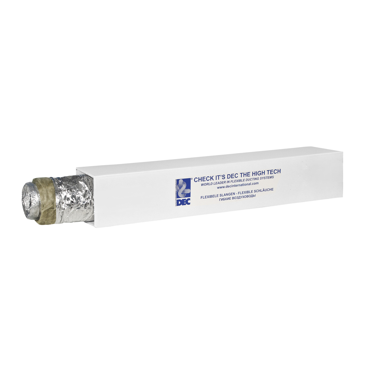 DEC использует современное оборудование, которое исключает смятие воздуховода при упаковке на производстве. Прочная картонная коробка защищает от деформации при транспортировке.